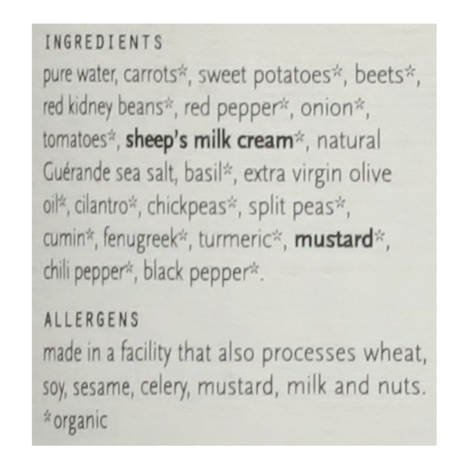 organic : 95%+ organic