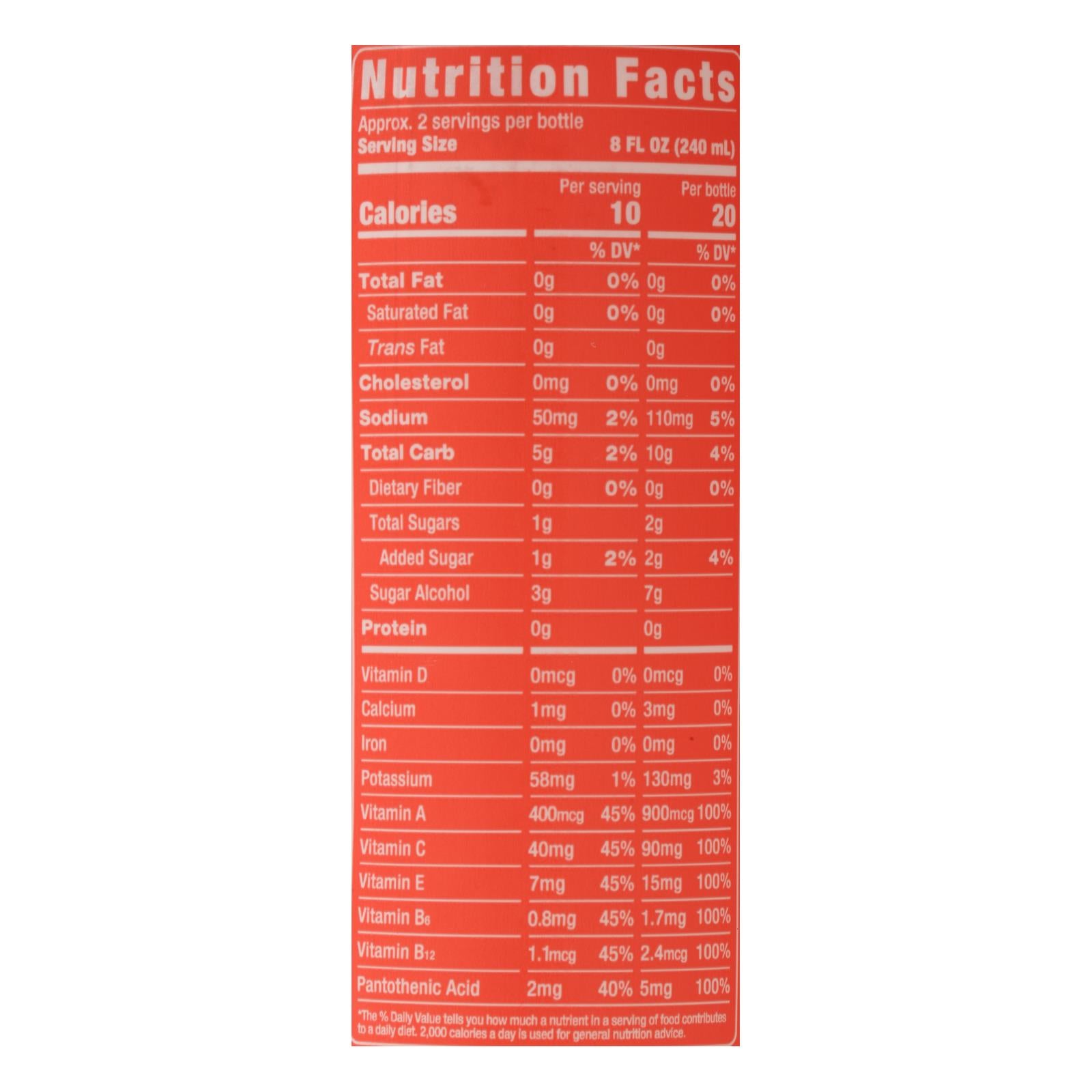 ingredients : filtered water;organic coconut water from concentrate (water sufficient to reconstitute, organic coconut water concentrate);organic erythritol;organic cane sugar;organic natural flavors;citric acid;sea salt;beta carotene for color;ascorbic acid (vitamin c);potassium citrate;l-malic acid;organic stevia leaf extract;dl-alpha- tocopheryl acetate (vitamin e);retinyl palmitate (vitamin a);d-calcium pantothenate (vitamin b-5);pyridoxine hydrochloride (vitamin b-6);cyanocobalamin (vitamin b-12)