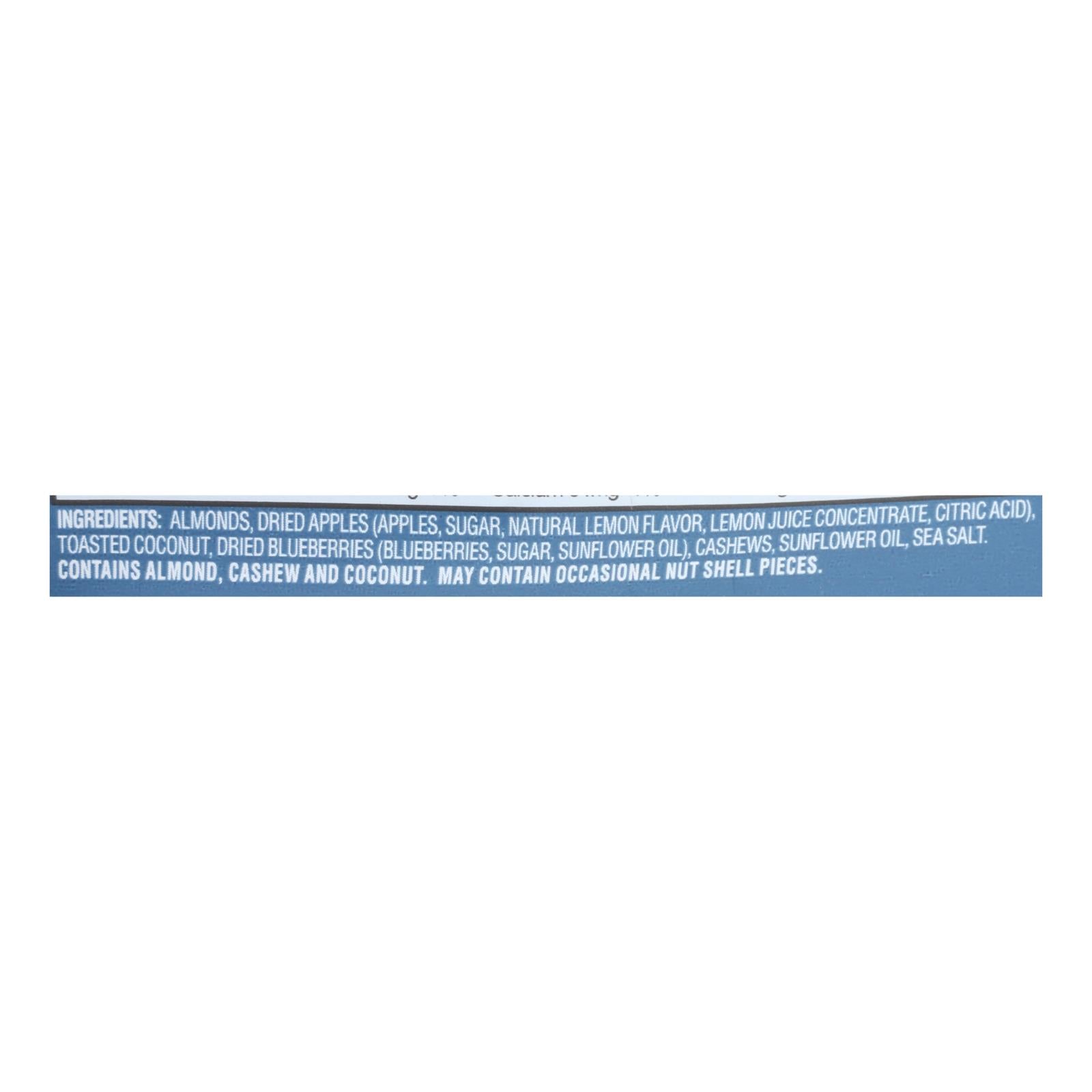 ingredients : almonds;dried apples;apples;sugar;natural lemon flavor;lemon juice concentrate;citric acid;toasted coconut;dried blueberries;blueberries;sunflower oil;cashews;sea salt
