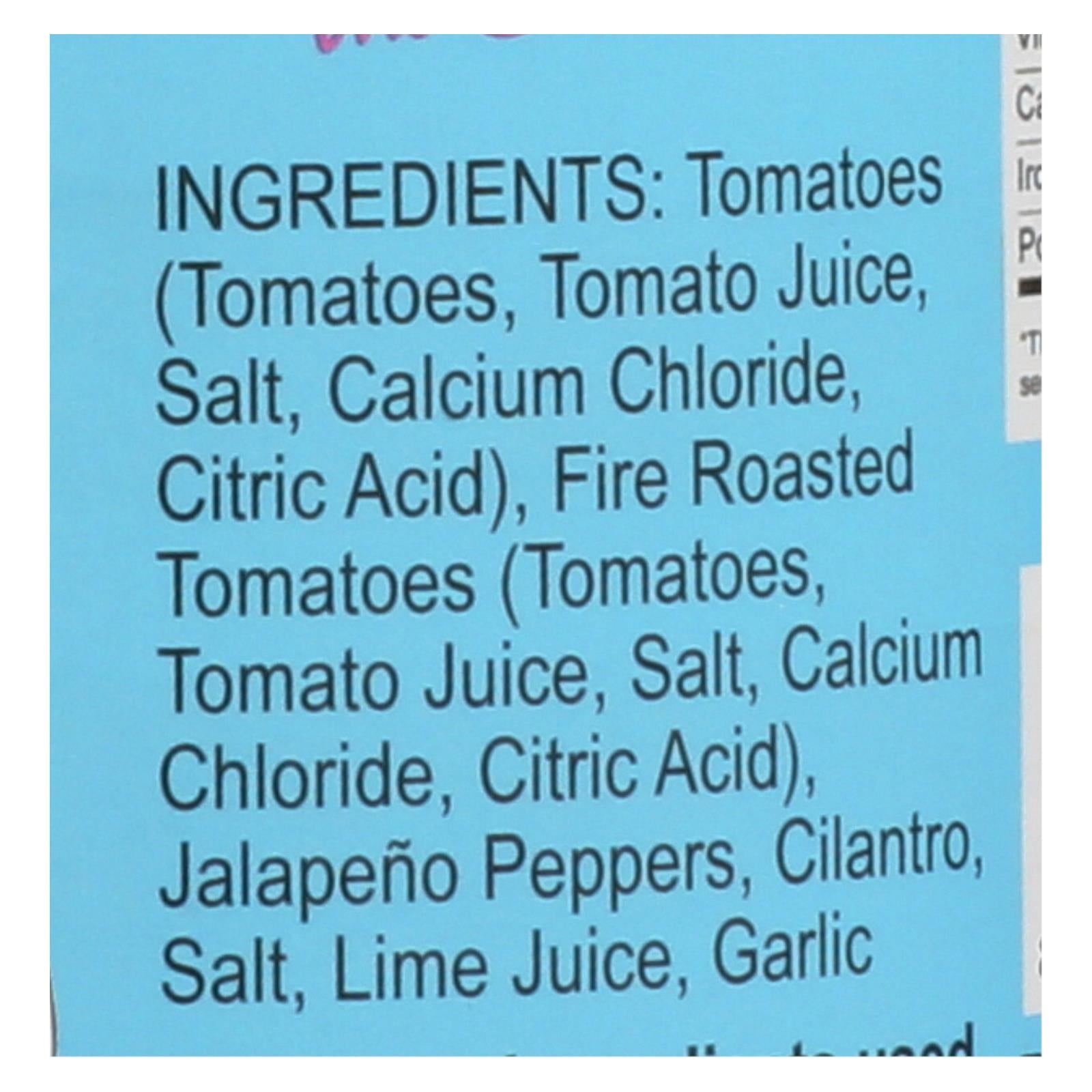 ingredients : tomatoes;tomato juice;salt;calcium chloride;citric acid;fire roasted tomatoes;jalapeño peppers;cilantro;lime juice;garlic
