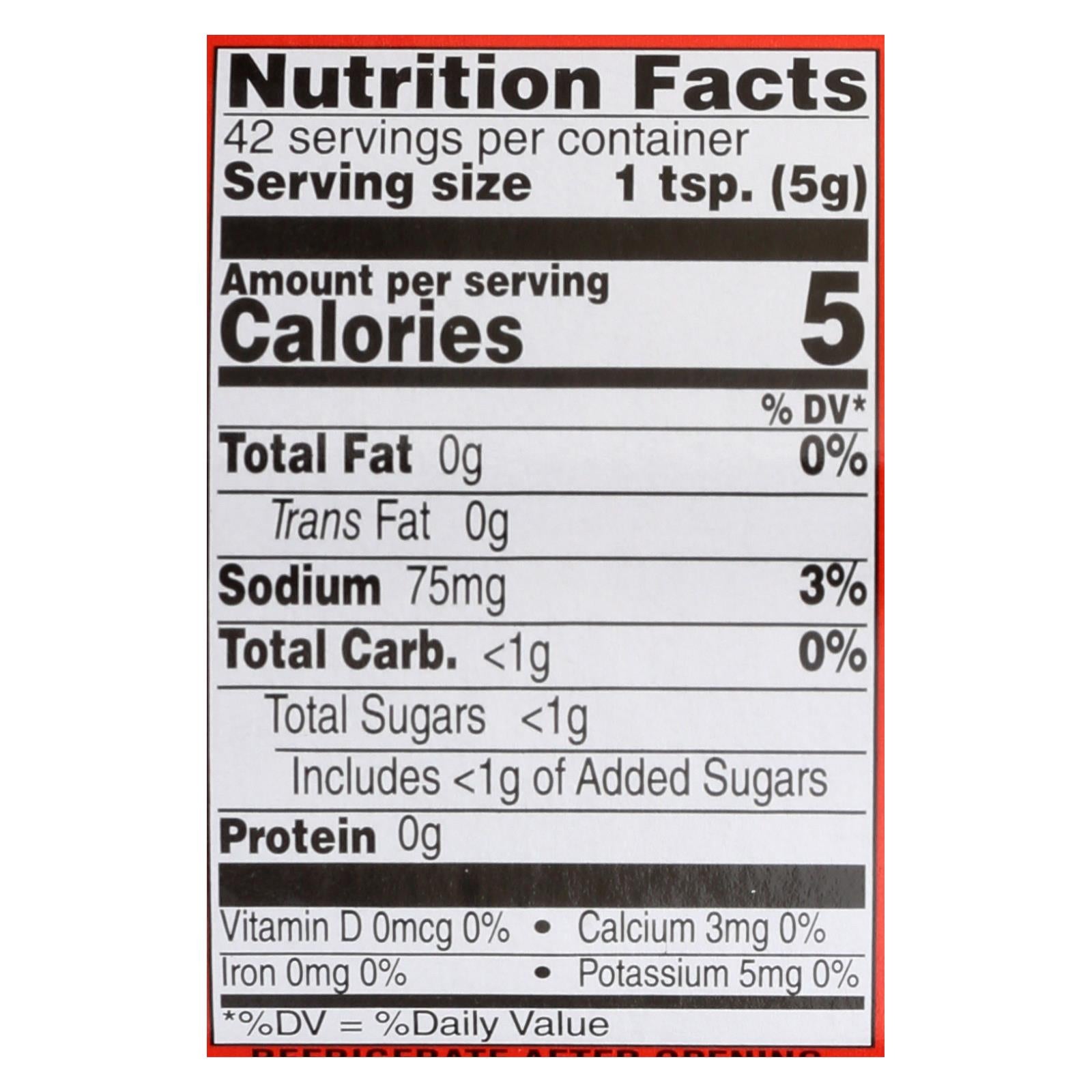 ingredients : distilled vinegar;water;mustard seed;salt;sugar;spices;turmeric;garlic powder;onion powder;artificial flavoring