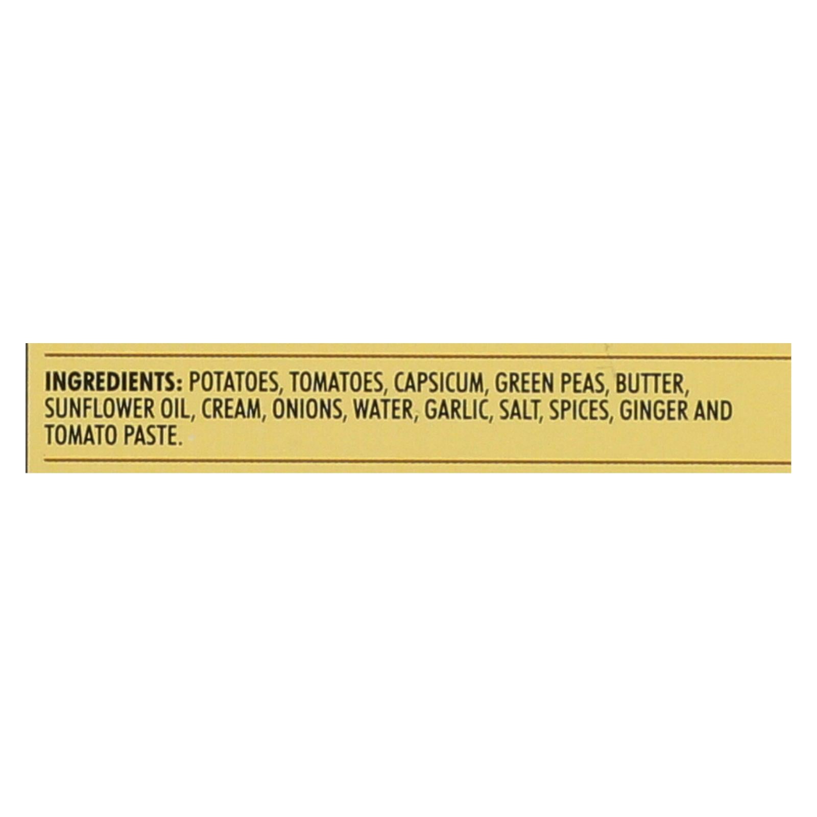 ingredients : potatoes;tomatoes;capsicum;green peas;butter;sunflower oil;cream;onions;water;garlic;salt;spices;ginger and tomato paste
