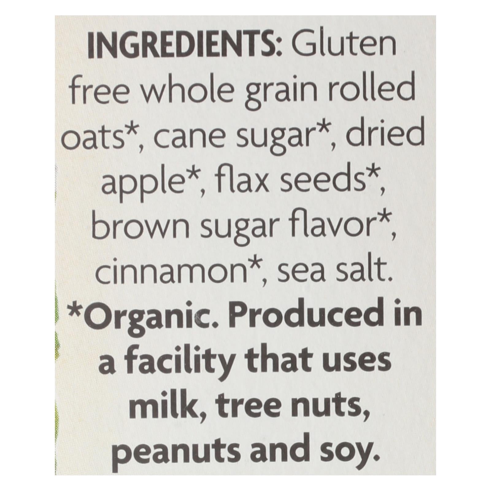ingredients : gluten free whole grain rolled oats;cane sugar;dried apple;flax seeds;brown sugar flavor;cinnamon;sea salt
