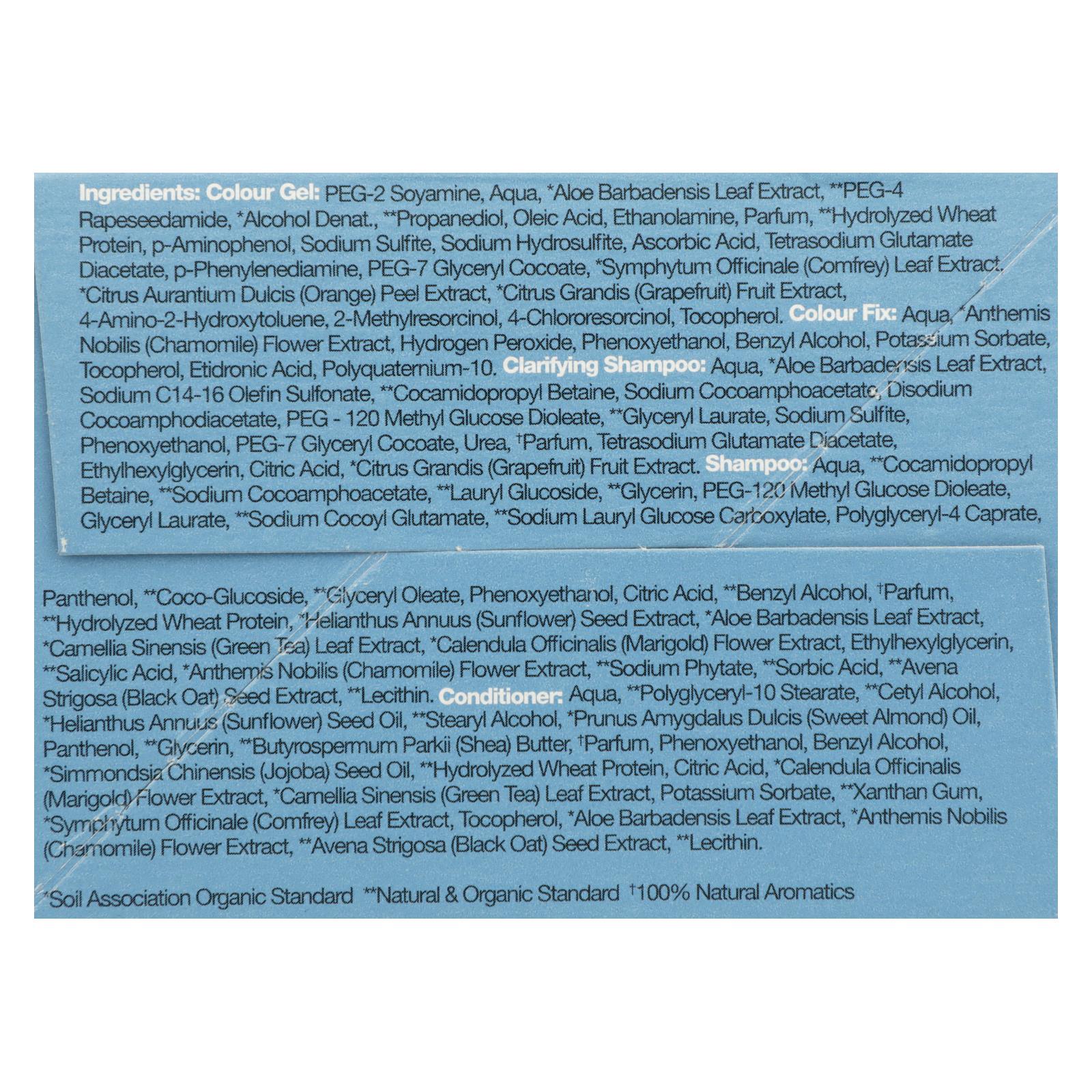 ingredients : colour gel: peg-2 soyamine;aqua;aloe barbadensis leaf extract;peg-4 rapeseedamide;alcohol denat;propanediol;oleic acid;ethanolamine;parfum;hydrolyzed wheat protein;p-aminophenol;sodium sulfite;sodium hydrosulfite;ascorbic acid;tetrasodium glutamate diacetate;p-phenylenediamine;peg-7 glyceryl cocoate;symphytum officinale;comfrey;leaf extract;citrus aurantium dulcis;orange;peel extract;citrus grandis;grapefruit;fruit extract;4-amino-2-hydroxytoluene;2-methylresorcinol;4-chlororesorcinol;tocopherol