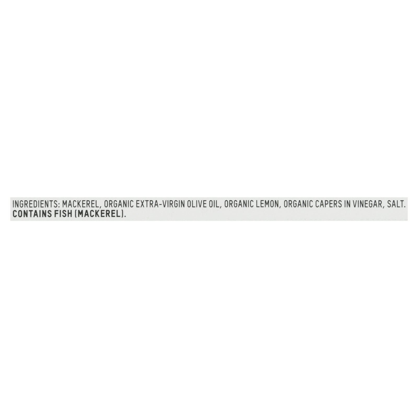 ingredients : mackerel;organic olive oil;organic lemon;organic capers in vinegar;salt